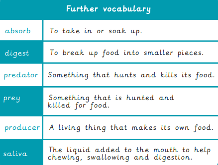 This half term, our science learning begins with an exciting exploration of the digestive system, as well as comparing the teeth and diets of different animals within food chains.